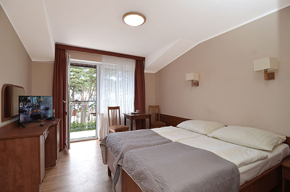 ODDAJEMY do dyspozycji noclegi w pokojach 2-, 3- i 4- osobowych o wysokim standardzie. Każdy z nich wyposażony jest w pełny węzeł sanitarny, TV SAT i czajnik bezprzewodowy. Wszystkie pokoje posiadają również własne wyjście na balkon. Oferta nasza zawiera także pokoje typu studio (dwa pokoje + łazienka) oraz pokoje o podwyższonym standardzie (m.in. duży taras). Ośrodek prowadzi własną gastronomię. Zapraszamy Państwa na 2 posiłki dziennie – śniadania na zasadzie bufetu i podobnie obiadokolacje. Śniadania są wydawane od 8.00 do 10.30, a obiadokolacje od 16.00 – 18.00.